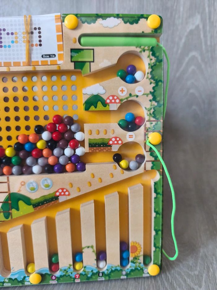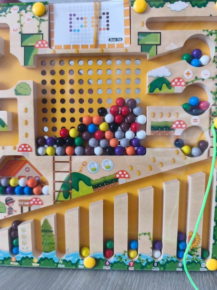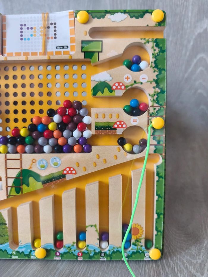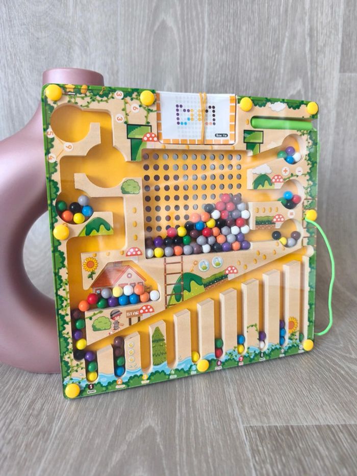 Jeu en bois magnétique de classification des couleurs. 📍Jeu éducatif neuf. 📍Vendu dans sa boîte. 📍Entraînement sensoriel. 📍Classification des couleurs 📍Développement de la motricité fine et globale. 📍A l'aide du petit stylet aimanté, l'enfant va aller chercher chaque bille pour aller la mettre dans le pot correspondant. 📍Permet également de compter, puisque les pots contenant les billes, vont de 1 à 10. 📍Taille : 22 x 22 x 1,5 cm 👉Pour trouver d'autres activités c'est par ici : 🔎#elisabethdesignMotricitéFine 📫⏳ Envoi rapide et soigné le jour même de l'achat dans la mesure du possible! 🤝 Frais de port ajusté au plus bas.