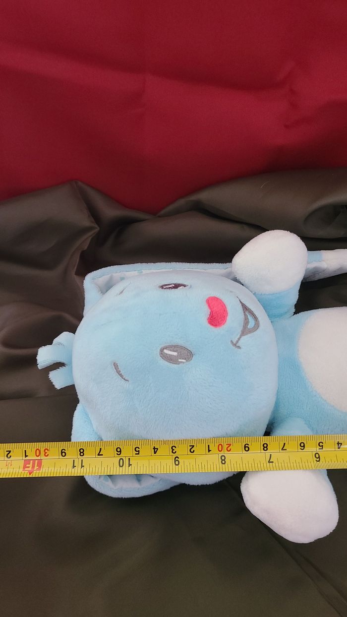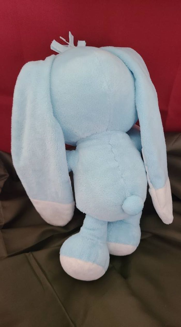 Doudou Lapin bleu et blanc fleur nœuds AUCHAN - photo numéro 5