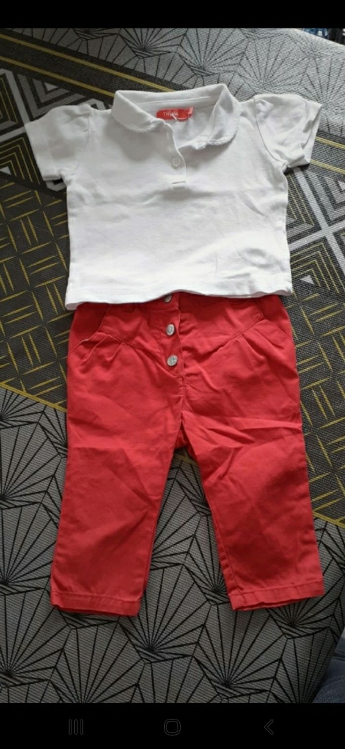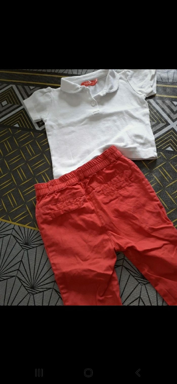 Lot comprenant 1 pantalon TBE et un Polo neuf Marque tissaia taille 6 mois