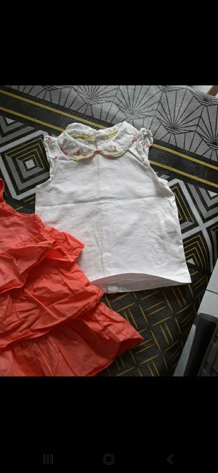 Ensemble fille taille 6 mois Marque sergent major Une robe à bretelle et volants, neuve juste lavé 1 polo très jolie, porté 1 ou 2 fois
