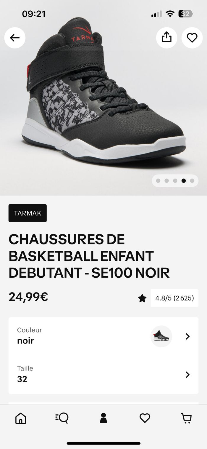 Chaussures de Basketball Enfant SE100 noir Taille 32 Marque TARMAK Acheté 24.99€ => prix de vente 10€