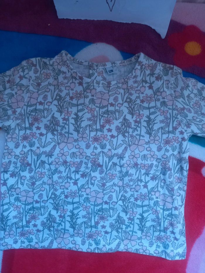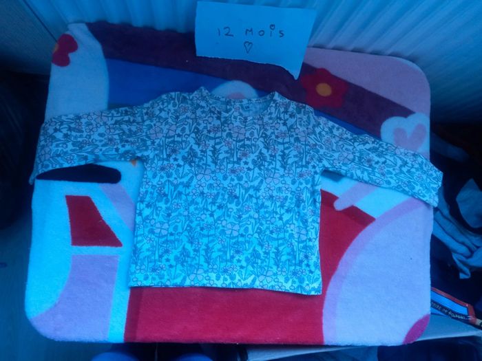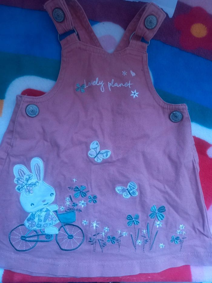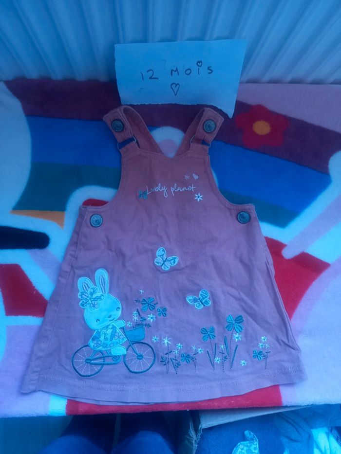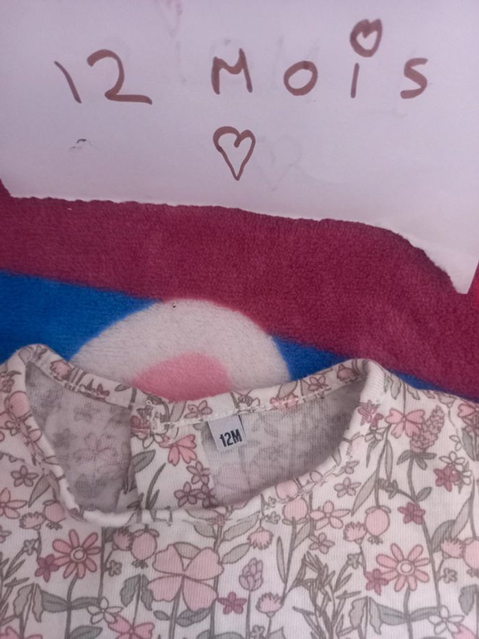 Robe lapin rose et son haut manche longue fleur taille 12 mois