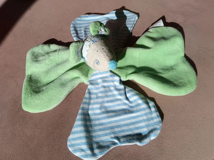 Doudou plat peluche souris forme trèfle à 4 feuilles marque les bébés d'Elyséa