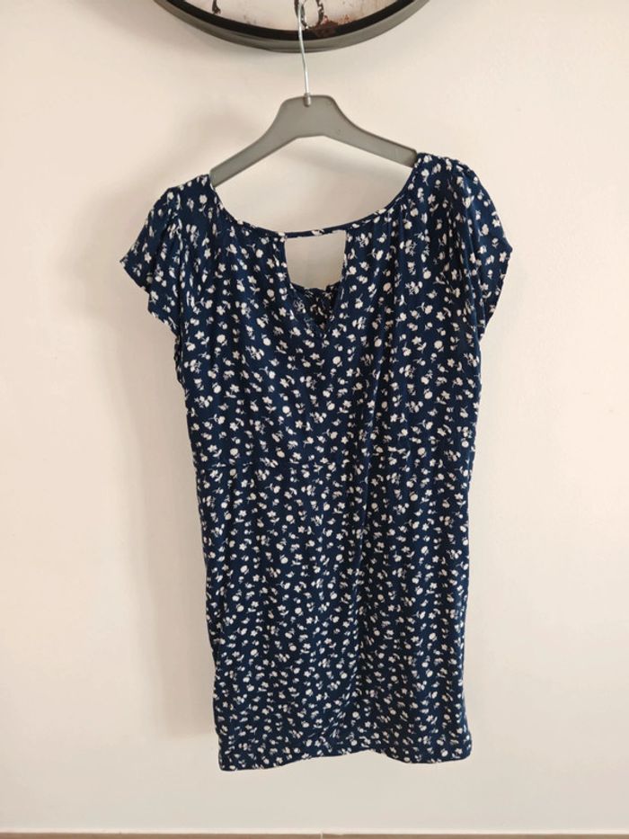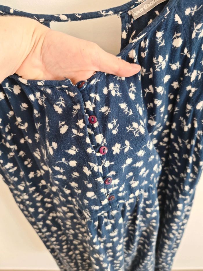 Robe d'été bleue et motif blanc, légère Un accroc dans le dos (dernière photo) Verbaudet taille 42 Les boutons s'ouvrent devant, idéal pour l'allaitement