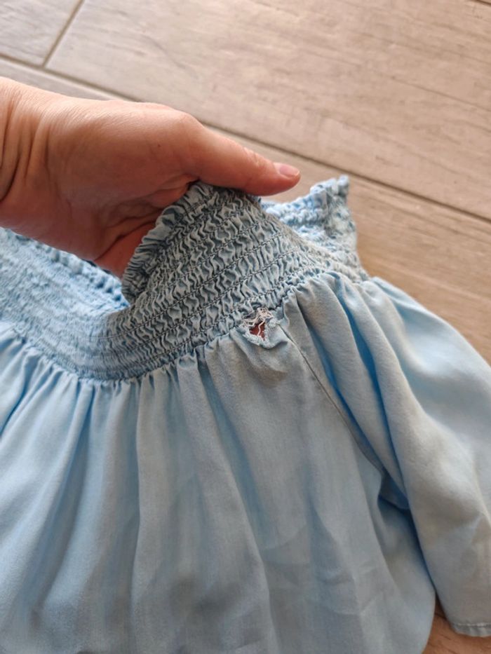 Combi-short bleu ciel, épaule dénudée. A noter : un petit trou Taille 42