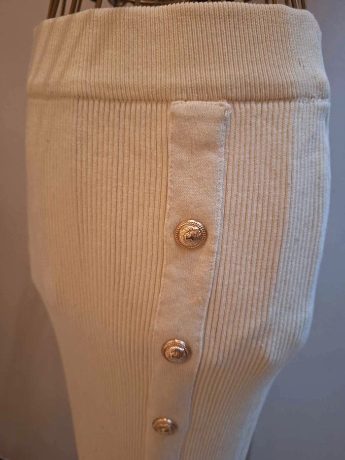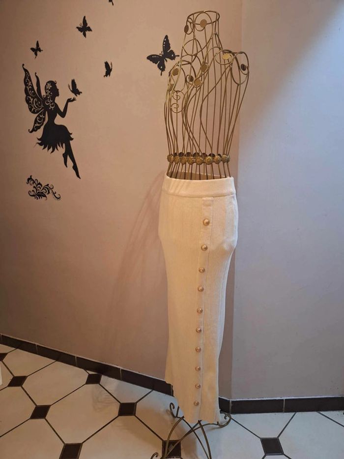 Jupe longues en mailles côtelées crèmes - longueur 93 cm - moulante : la matière est extensible et s'adapte à votre morphologie - la taille est elastique et vous pouvez choisir de la porter haute ou plus basse - boutons officiers or décoratifs sur le coté et tout le long de la jupe - taille unique idéale pour les tailles S, M ou L ou 36 , 38 & 40 - état sans défaut ps : je ne fais pas de photo portée #jupelongue #jupelonguecreme #jupelongmailles