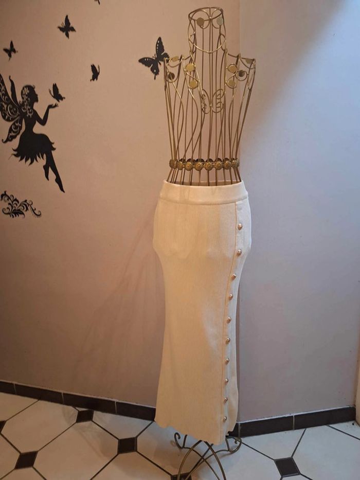 Jupe longue crème & boutons officier - photo numéro 1