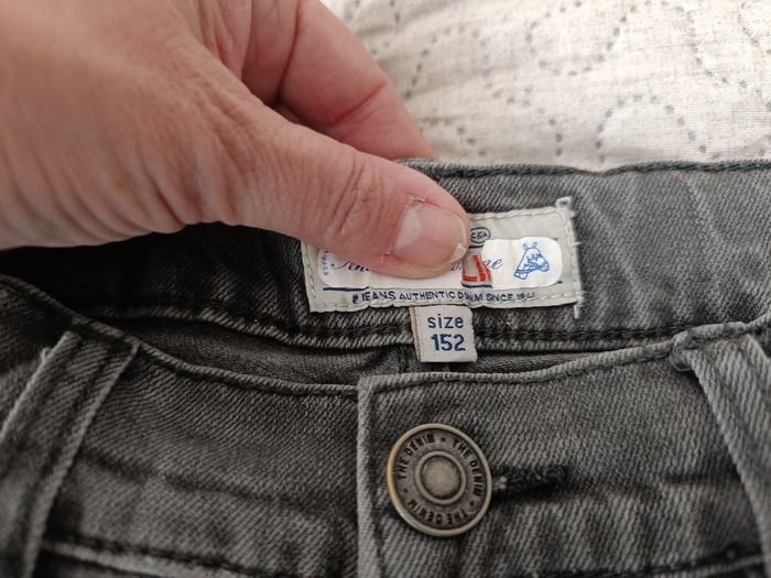 Jeans gris foncé Taille 152 Garçon Très bon état La taille se règle par élastique