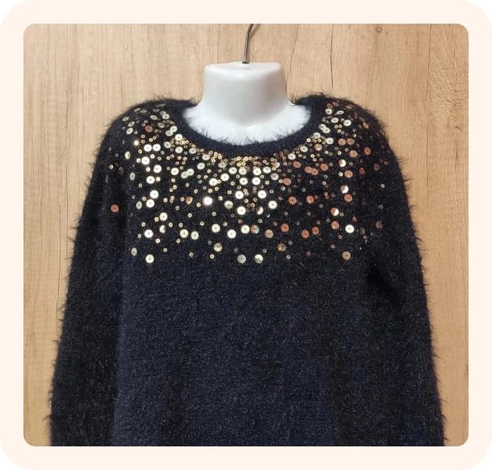 Pull noir avec des brillant sur le haut Effet plus court devant et plus long derrière Il est très joli porté Très bon état Taille 6 ans 8 ans H&M #aestefan6ans #aestefan8ans #pull #noir #brillant #fille #6ans #8ans #h&m