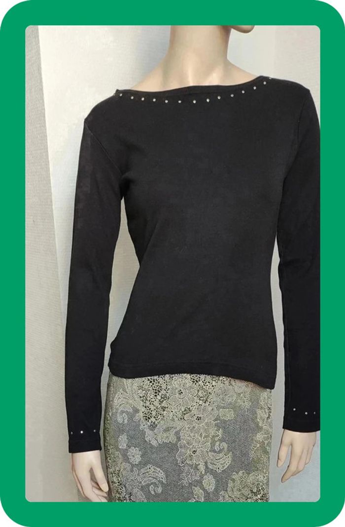 Tee-shirt manches longues Brillant au niveau du col et des poignets Noir Jacqueline Riu Neuf sans étiquette La jupe est en vente dans une autre annonce Vous trouverez d'autres vêtements en 36 ou S en cliquant ici #aestefan_36_S #jacquelineriu #jacqueline #riu Black T-shirt Size S 36 Jacqueline Riu Neuf Camiseta negra Talla S 36 Jacqueline Riu Neuf T-shirt nera Taglia S 36 Jacqueline Riu Neuf Schwarzes T-Shirt Größe S 36 Jacqueline Riu Neuf T-shirt preta tamanho S 36 Jacqueline Riu Neuf