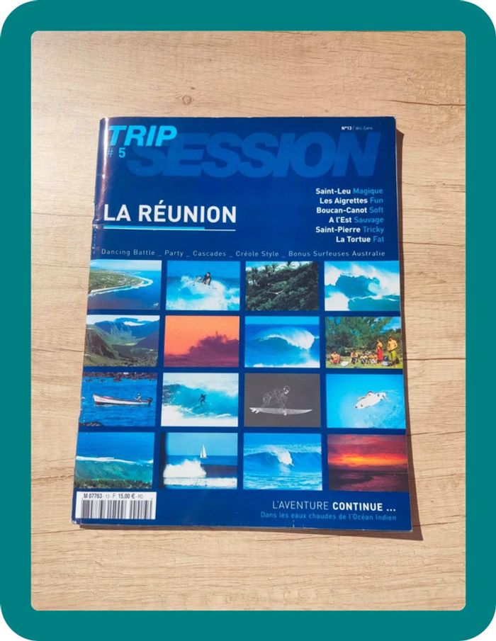 Trip session #5 La Réunion N°13 Déc/janv L'aventure continue dans les eaux chaudes de l'Océan Indien Saint-Leu Magique Les Aigrettes Fun Boucan-Canot Soft A l'Est Sauvage Saint-Pierre Tricky La Tortue Fat Très bon état juste le coin du recto de la couverture qui est corné Suivre le lien pour d'autres livres enfant et adultes #aestefanlivreenfant #aestefanlivreadulte
