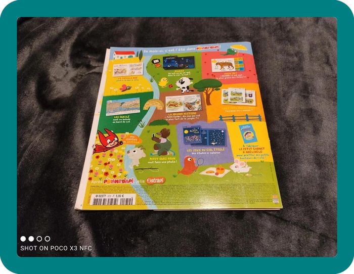 Vends magazine Pomme d'Api de chez Bayard pour les 3-7 ans. Des histoires pour la lecture du soir, des héros qui lui ressemble, des documentaires pour répondre à ses questions d'enfants et des activités (coloriage, autocollant, jeux etc....). Il est en bon état sauf 3 tâches sur la couverture Sur la page 23, il y a un trait de feutre et également sur la dernière page du livre. (Voir photos). Suivre le lien pour d'autres livres enfant et adultes #aestefanlivreenfant #aestefanlivreadulte #livre #magazine #enfant #3-7ans #pommedapi #bayard