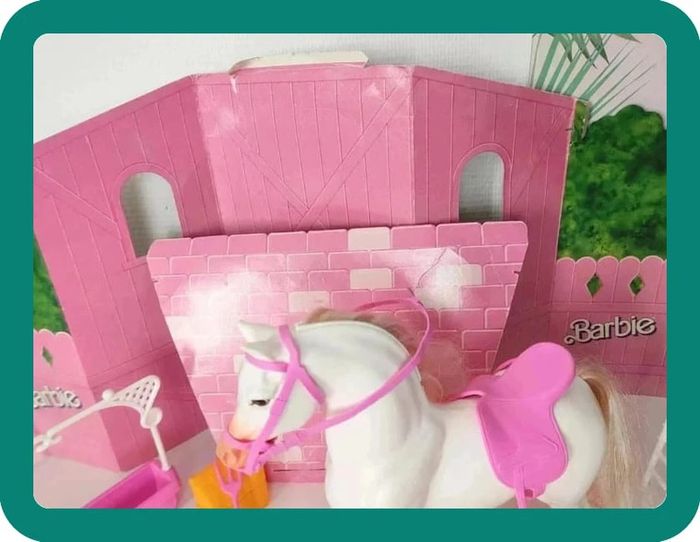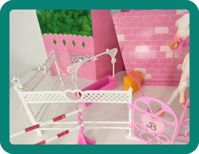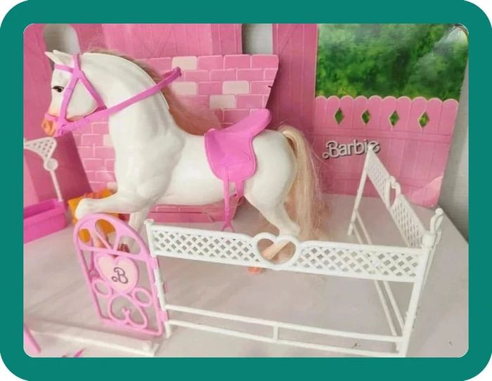 Vous pouvez voir l'article en vidéo sur ma page Instagram aestefan_vinted https://www.instagram.com/reel/CkkxgXpKmXs/?igshid=MDJmNzVkMjY= Club équestre Barbie de 1994 ? Vu son âge, il a des defaults mais reste malgré tout en bon état. Le carton est abimé à différent endroit et il manque les pièces pour accrocher le décor Le cheval, il manque les cils d'un coté. Le tissu qui recouvre le cheval a une tache. Les barrières, les embouts sont cassés... il reste les décorations. La veste de la cavalière est décousu au niveau d'une manche. Jouet pas complet et sans boîte Possible de trouver les pièces sur internet. #Barbie #jouet #clubequestre #club #equestre #cheval #cavaliere #vintage