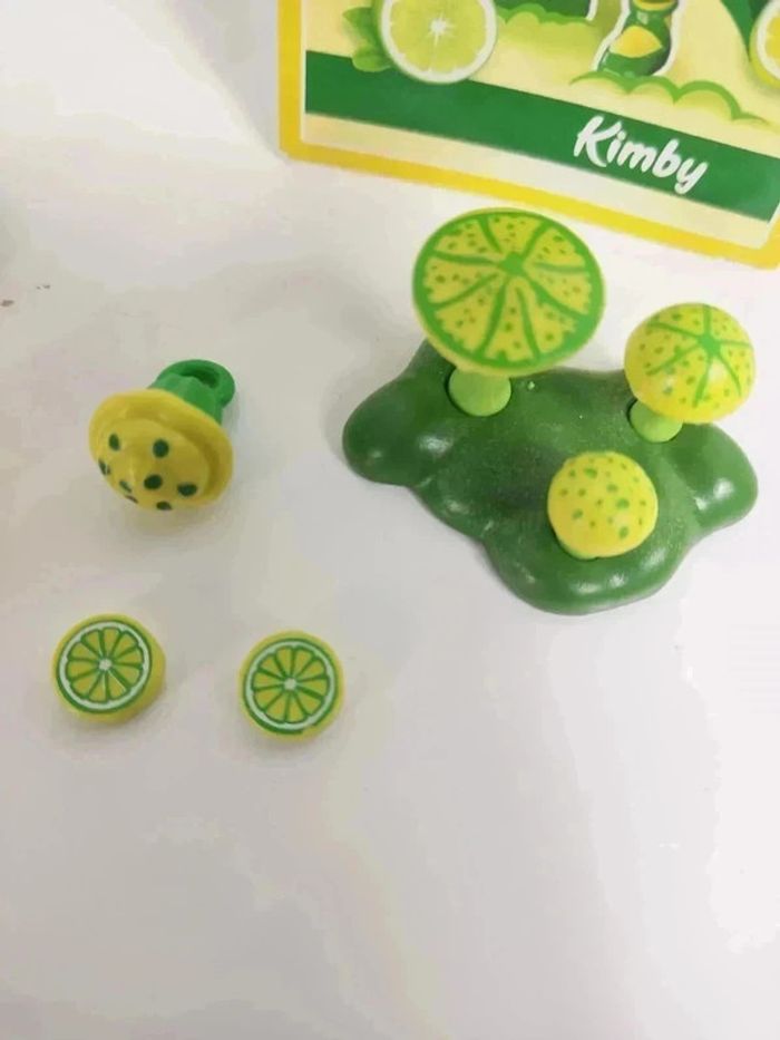 Vendu sans la boîte. Les jouets ont été nettoyé pour la vente. Très bon état. Il manque une manchette de poignet. Il manque un citron sur la photo mais c'est un oubli de ma part. Il y aura bien les 3. #aestefanjouet #playmobil #kimby #70389