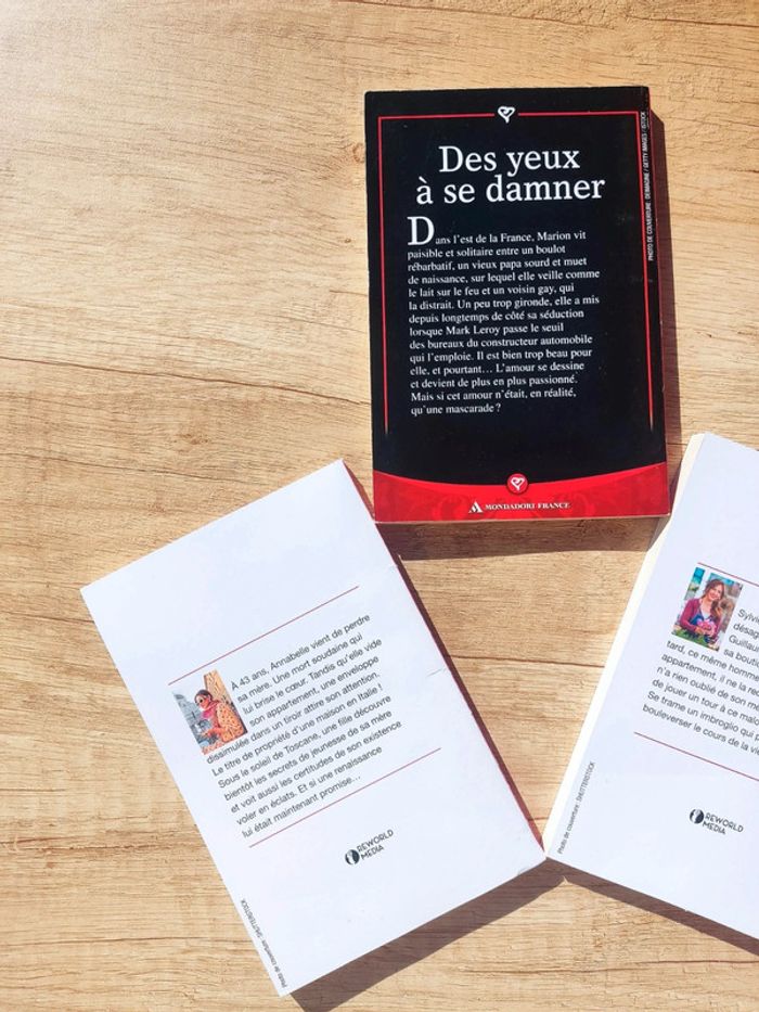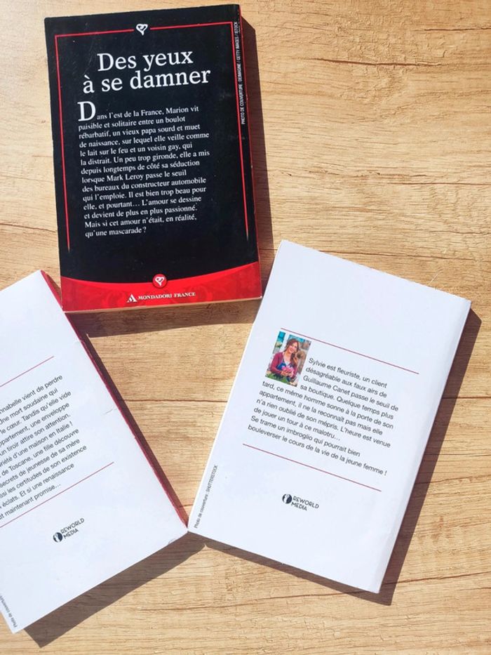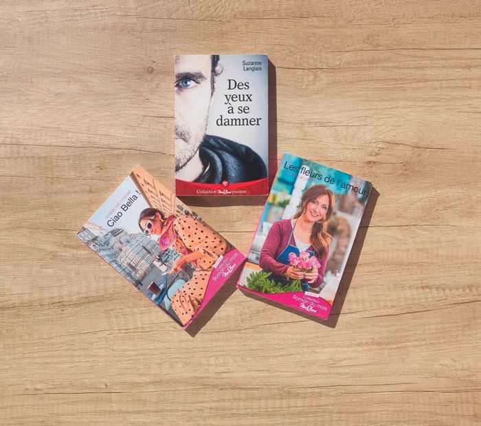 Lot composé de 3 livres Collection Roman du mois Collection Nous deux Passion 1ier Livre Des yeux à se damner de Suzanne Langlais 2ième Livre Les fleurs de l'amour d'Emilie Sagapo 3ième Livre Cia Bella d'Ambre Dellemare Les livres sont en très bon état les couvertures sont légèrement abimés par endroits. c'est vraiment minimes rien de bien méchant voir photos Suivre le lien pour d'autres livres enfant et adultes #aestefanlivreenfant #aestefanlivreadulte