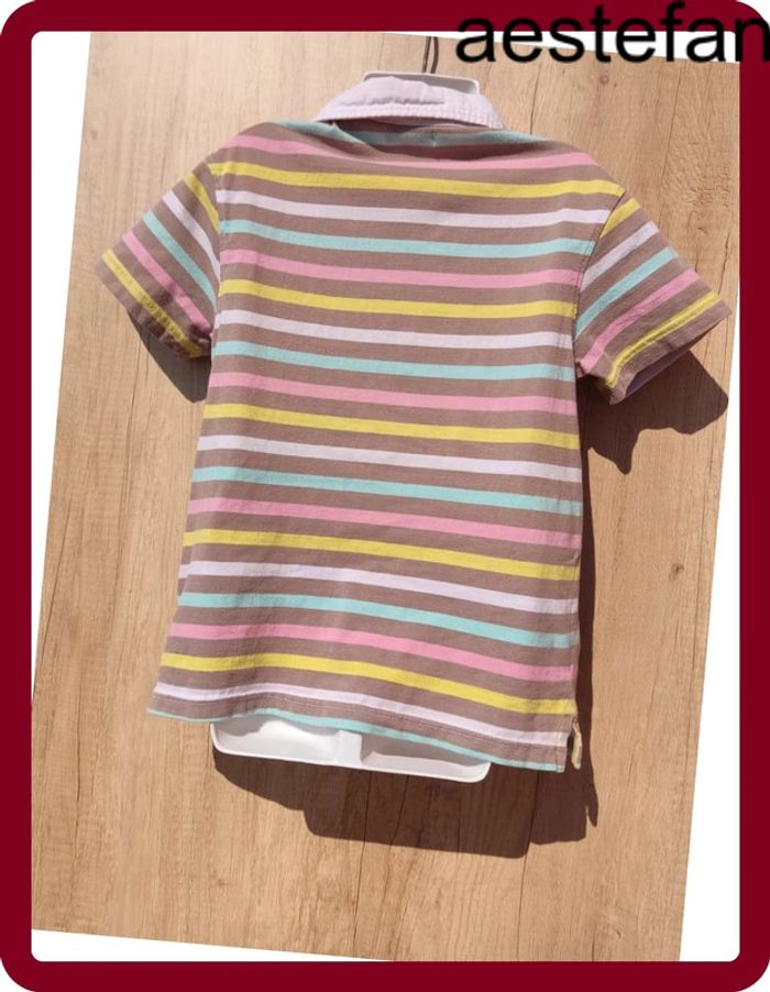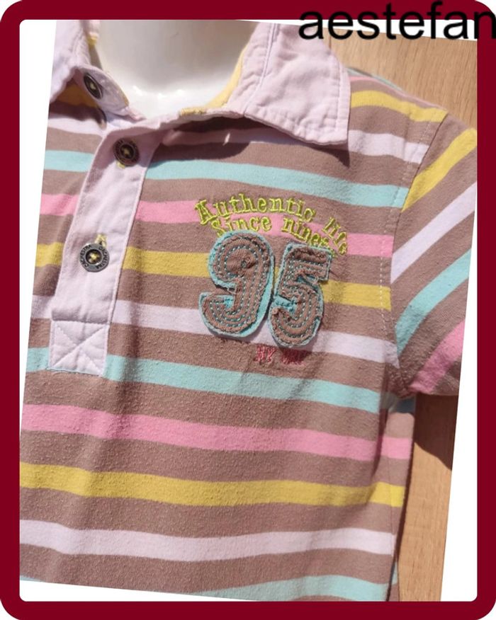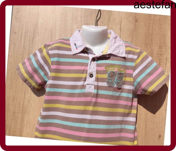 Polo manches courtes Rayé multicolore 3 boutons sur le haut Logo 95 "Authentic life since Ninety by Orc Il est en très bon état, tissu légèrement bouloché 8 ans Orchestra #aestefan8ans #polo #manchescourtes #orchestra #garcon #8ansfille