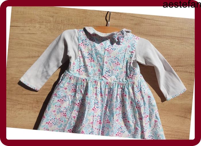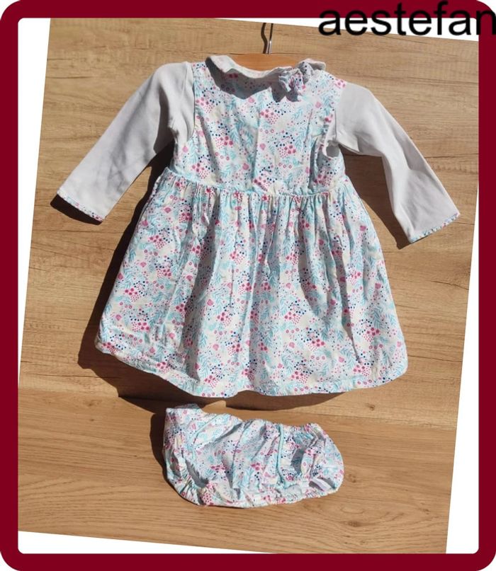Ensemble printemps/été fille Sergent Major SGMJ 18 mois 80 cm Thème « légende des fonds marins » composé de: - 1 magnifique robe « cœur croisé » avec bloomer assorti blanche avec motifs fleurs et coquillages dans les tons bleu ciel , bleu, rose et jaune. très beau volume ! Très bon état comme neuf - 1 body à col et petit nœud (finitions des manches et du col bleu/roses dont motifs poissons, étoiles de mer , feuillages, etc) Très bon état sauf la couleur que je trouve moins blanche que lors de l'achat rien de bien méchant. Présence d'une tache sur la manche droite, je vais le relaver ca devrait partir au lavage. prix neuf 80€ coup de cœur garanti ♥️ idéal cérémonies (mariages, baptême, fête de famille) , ou tout simplement pour être la plus belle à la maison 🥰 #aestefan12mois18mois