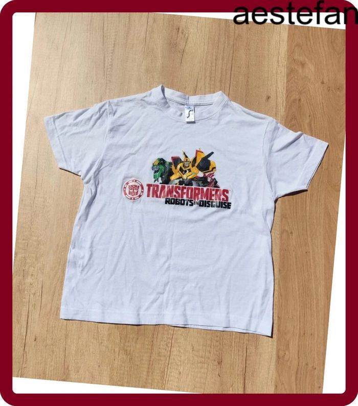 Tee shirt blanc avec dessin transformers + Masque Taille 10 ans Neuf #aestefan10ans