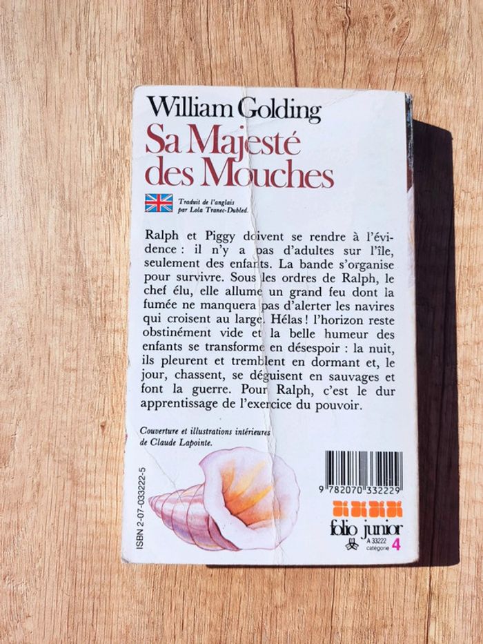 Sa majesté des mouches William Golding Folio Junior La couverture du livre est pliée à différents endroits recto/verso mais l'intérieur du livre est en très bon état. Suivre le lien pour d'autres livres enfant et adultes #aestefanlivreenfant #aestefanlivreadulte