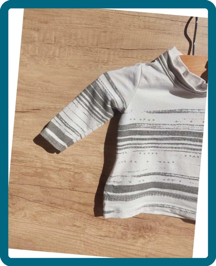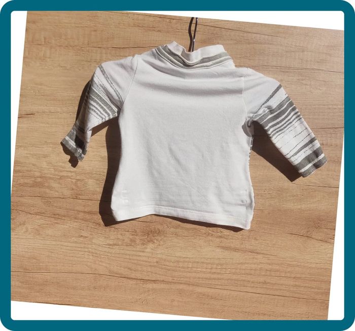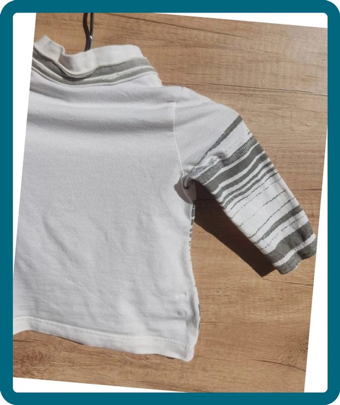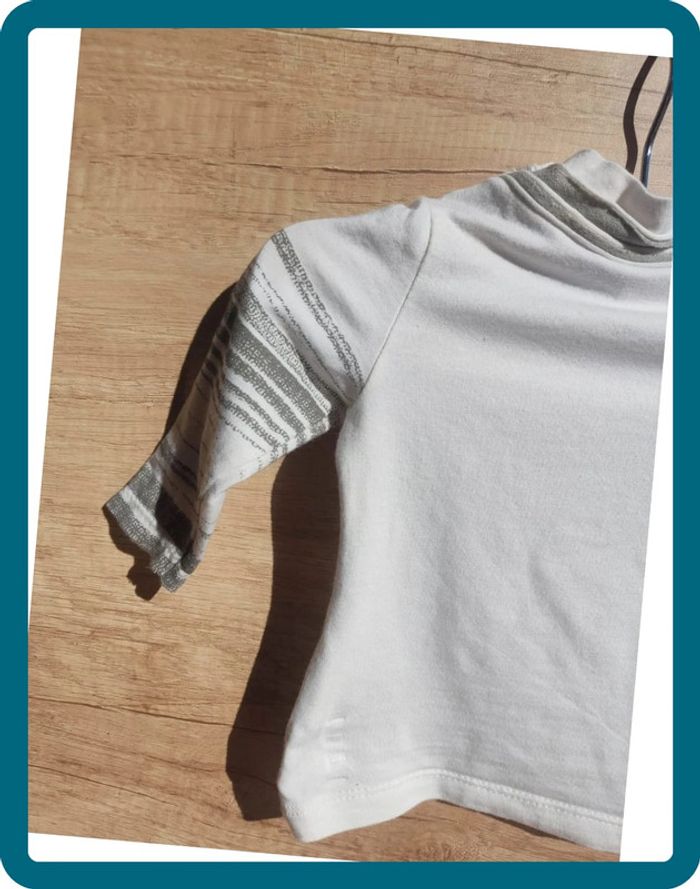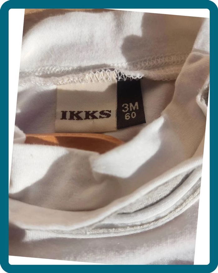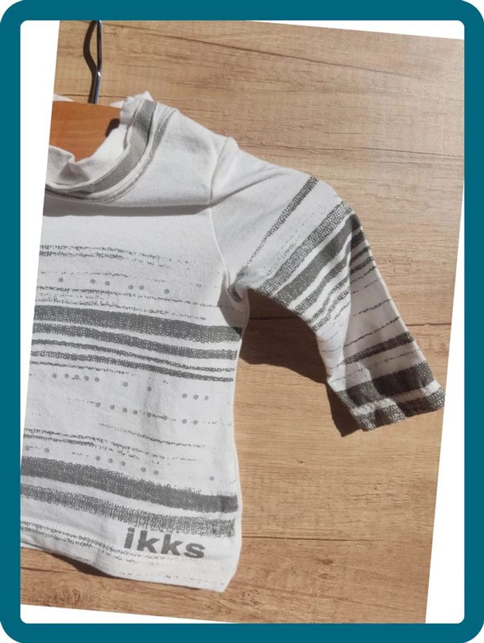 Tee-shirt Ikks Blanc avec des lignes grises pailletés 2 pressions en haut à gauche 3 mois Neuf sans étiquette