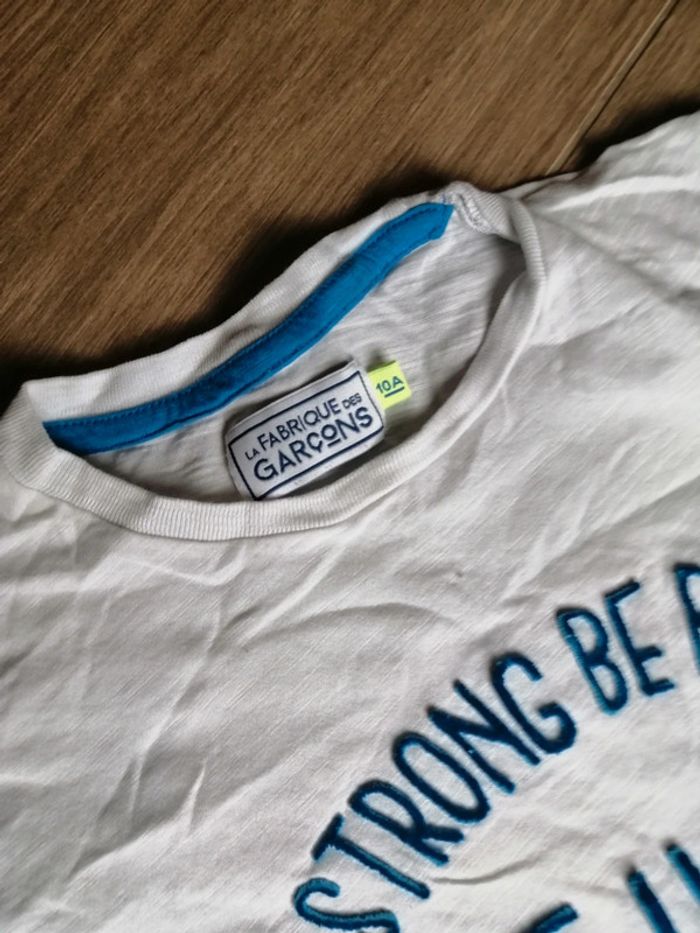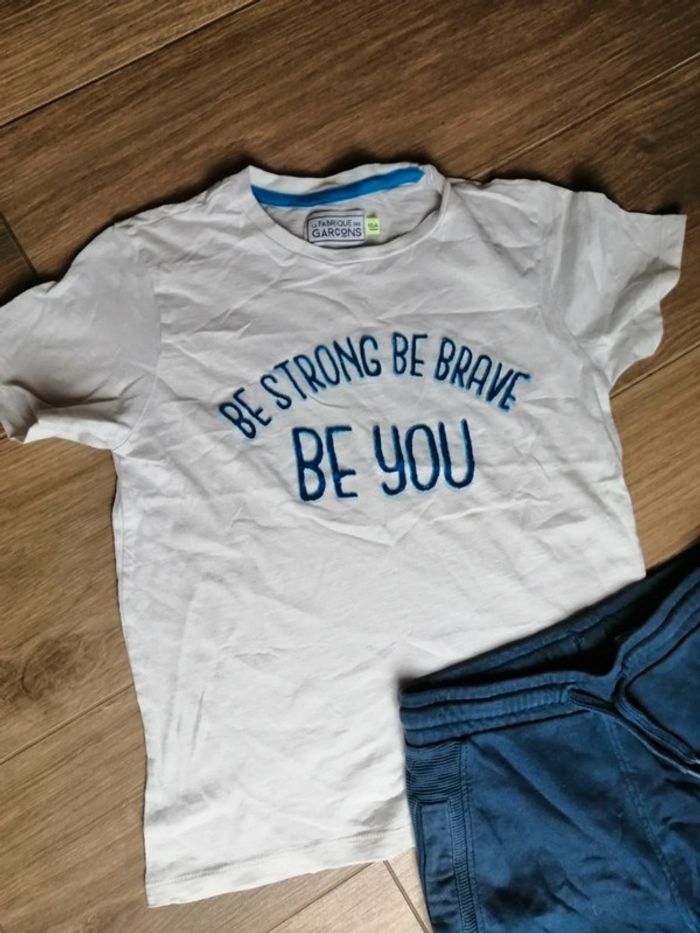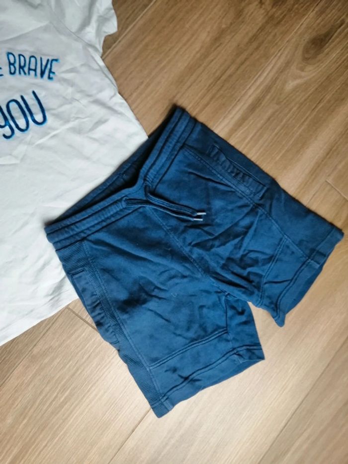 Taille 10 ans, short confortable bleu de chez kiabi et tshirt blanc en 10 ans