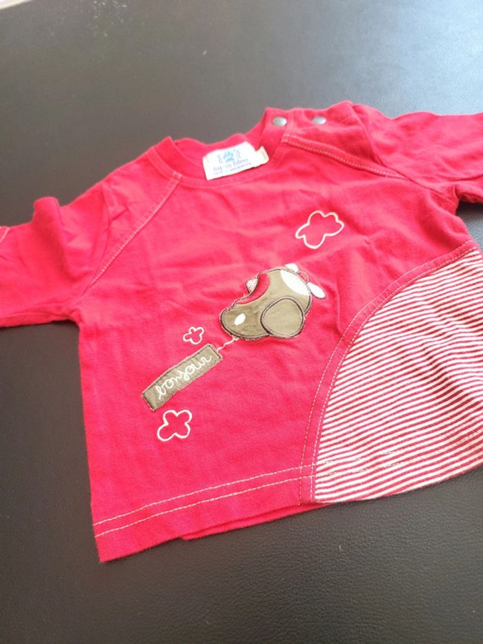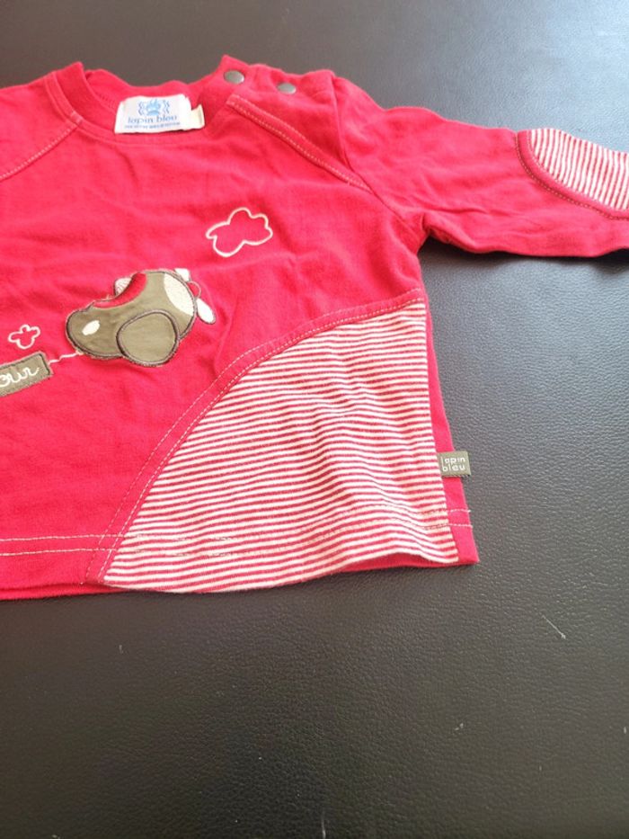 Tee-shirt rouge avec avion 6M lapin bleu - photo numéro 3