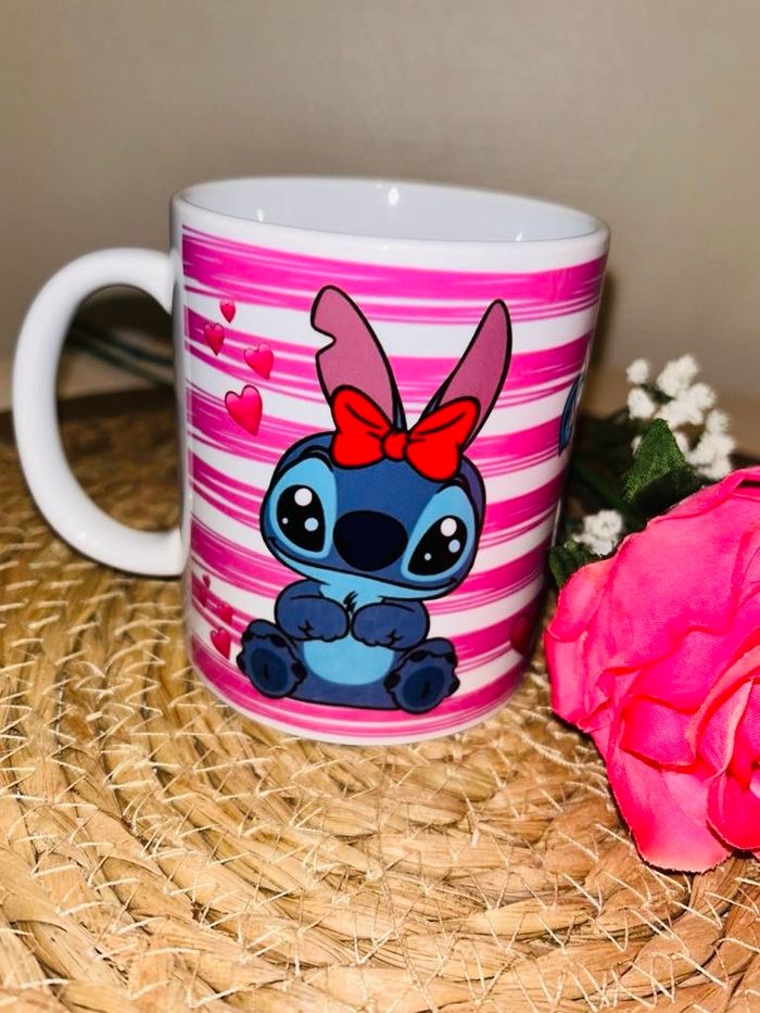 Mug disney stitch et souillon rose a rayure