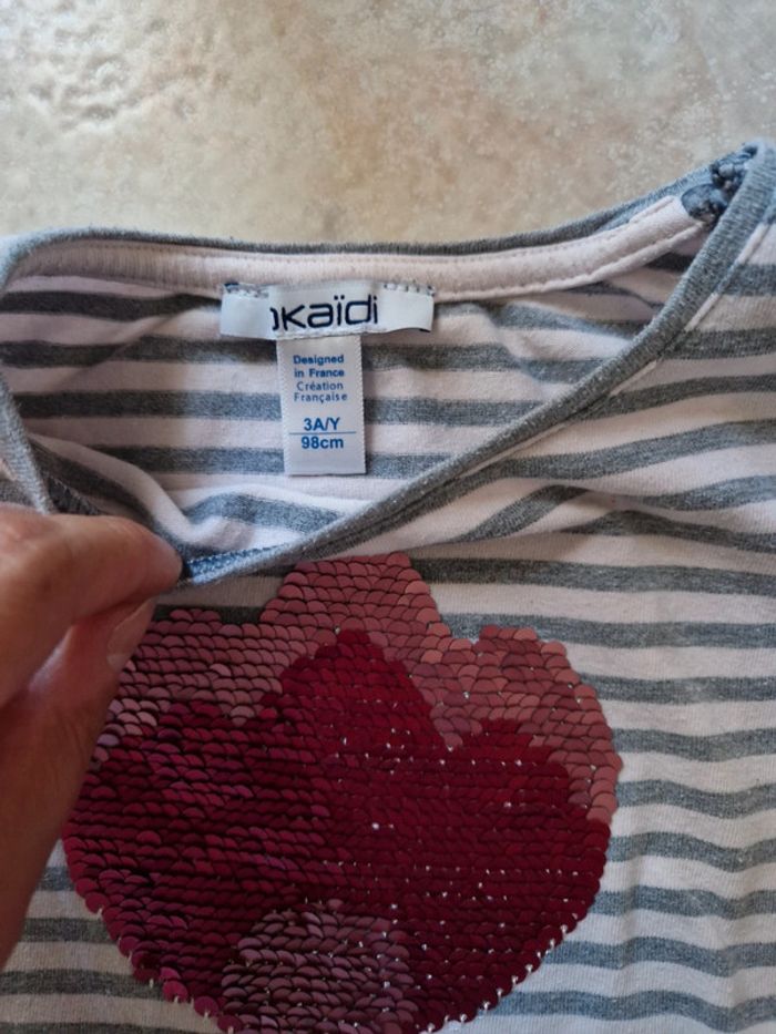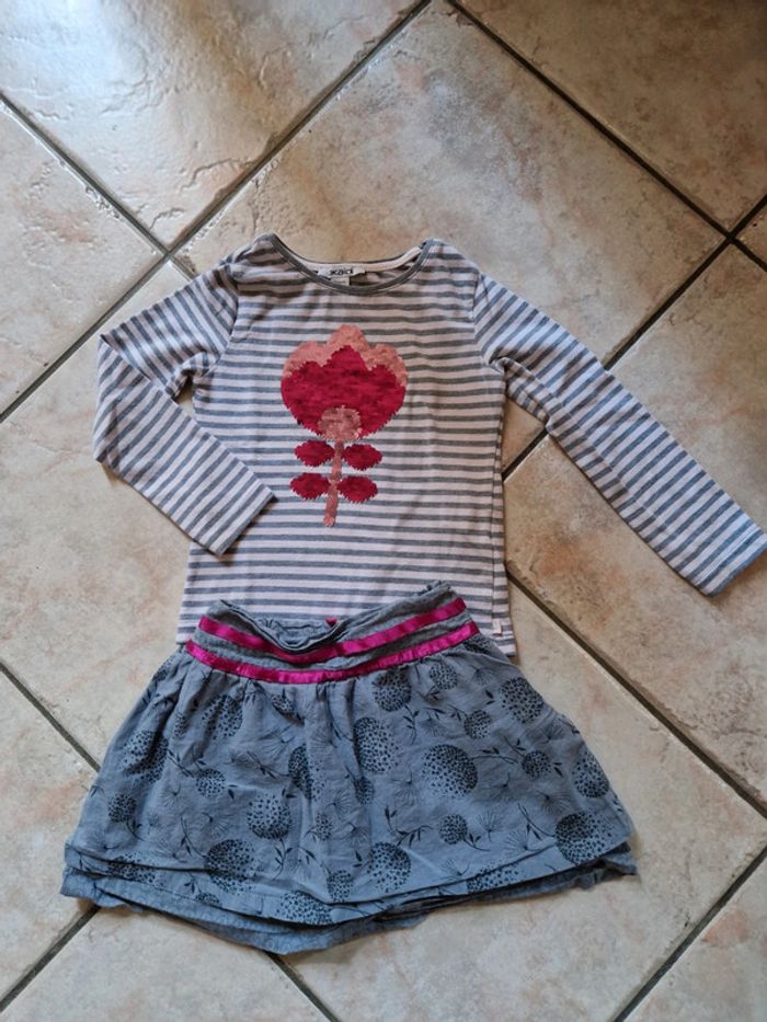 Bel ensemble fleur 🌸 composé : - d'un T-shirt ML avec sequins, dessin réversible Obaïbi 3 ans - d'une jupe entièrement doublée, ouverture fermeture éclair + élastiques avec boutons pour serrer la taille, Orchestra 2 ans Le tout convient parfaitement à une fille de 3 ans Mon dressing est rangé par taille. Pour voir tous mes vêtements en 2 et 3 ans cliquez sur les liens #celine_yiyi_2a #celine_yiyi_3a ATTENTION pour que les liens fonctionnent, pensez à supprimer vos filtres et recherches 😊