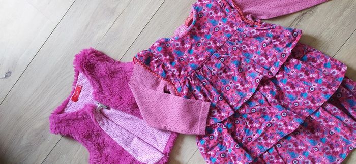 Ensemble fleuri de la marque Tissaia comprenant : - une robe en velours avec volants, jolie couleur - un T-shirt ML assorti avec dessins impeccables - un gilet sans manche moumouté avec attache devant Le tout en très bon état Mon dressing est rangé par taille. Pour voir tous mes vêtements en 24 mois (86 cm) et 2 ans (92 cm), cliquez sur les liens #celine_yiyi_24m #celine_yiyi_2a ATTENTION pour que les liens fonctionnent, pensez à supprimer vos filtres et recherches 😊