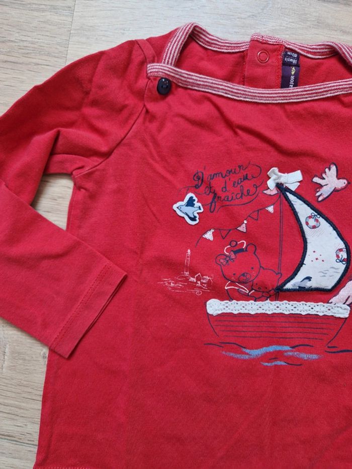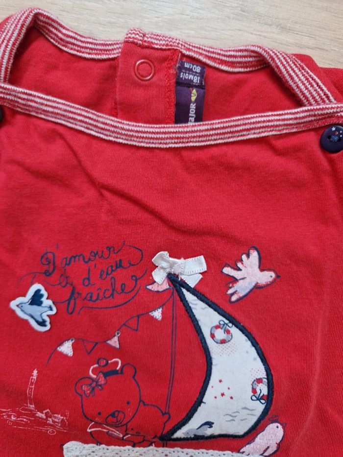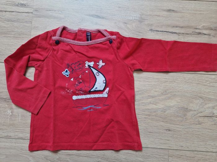 Joli T-shirt bateau Col bateau avec finitions boutons Pressions à l'arrière (l'une à perdu sa couleur) Mon dressing est rangé par taille. Pour voir tous mes vêtements en 18 et 24 mois, cliquez sur les liens #celine_yiyi_18m #celine_yiyi_24m ATTENTION pour que les liens fonctionnent, pensez à supprimer vos filtres et recherches 😊