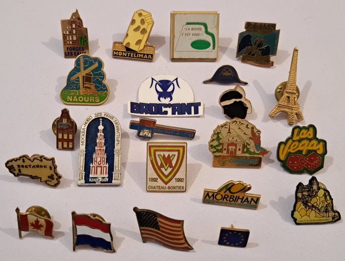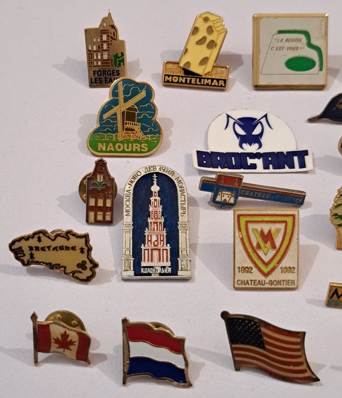 Lot de 21 pin's thème villes et pays / années 1980-1990 État : correct. Voir photos et description pour les détails. Envoi suivi, rapide et soigné (vente directe possible à Berck). Plusieurs articles vous intéressent ? Créez un lot pour rentabiliser les frais d'envoi. Besoin d'autre(s) renseignement(s) ? Contactez moi. Broc'Ant / Jouets – Jeux Vidéo – Brocante – Collection #brocant #brocantpins #brocante #vintage #retro #ancien #collection #pin #pins #badge #broche