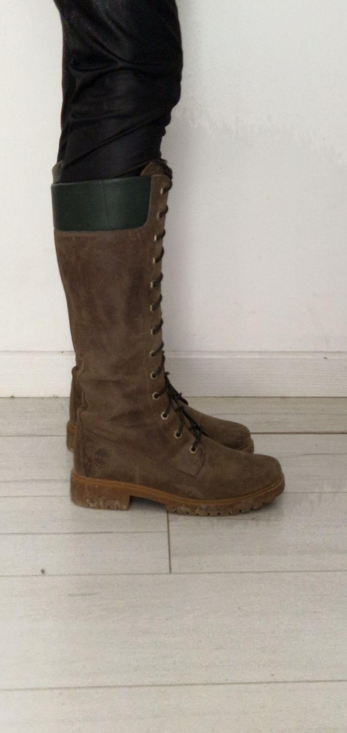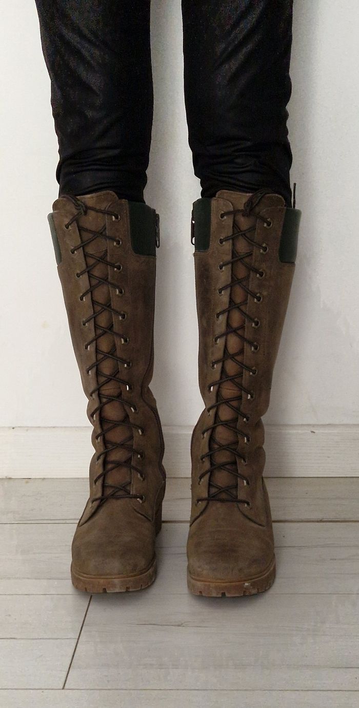 Bottes en très bon état avec lacets et fermeture éclair sur le côté. Imperméables Couleur kaki proche marron