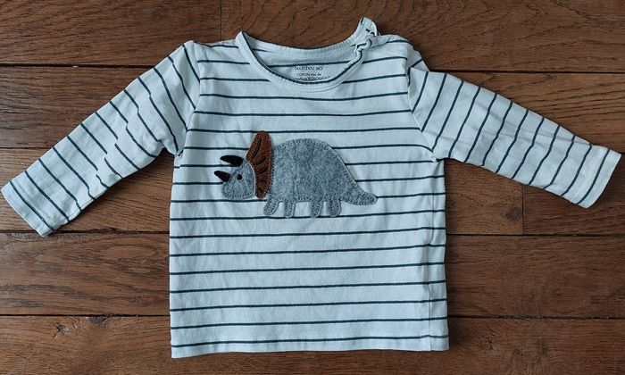 Tee shirt manches longues Blanc à rayures vert foncé Très bon état 6 mois Bout chou coton bio