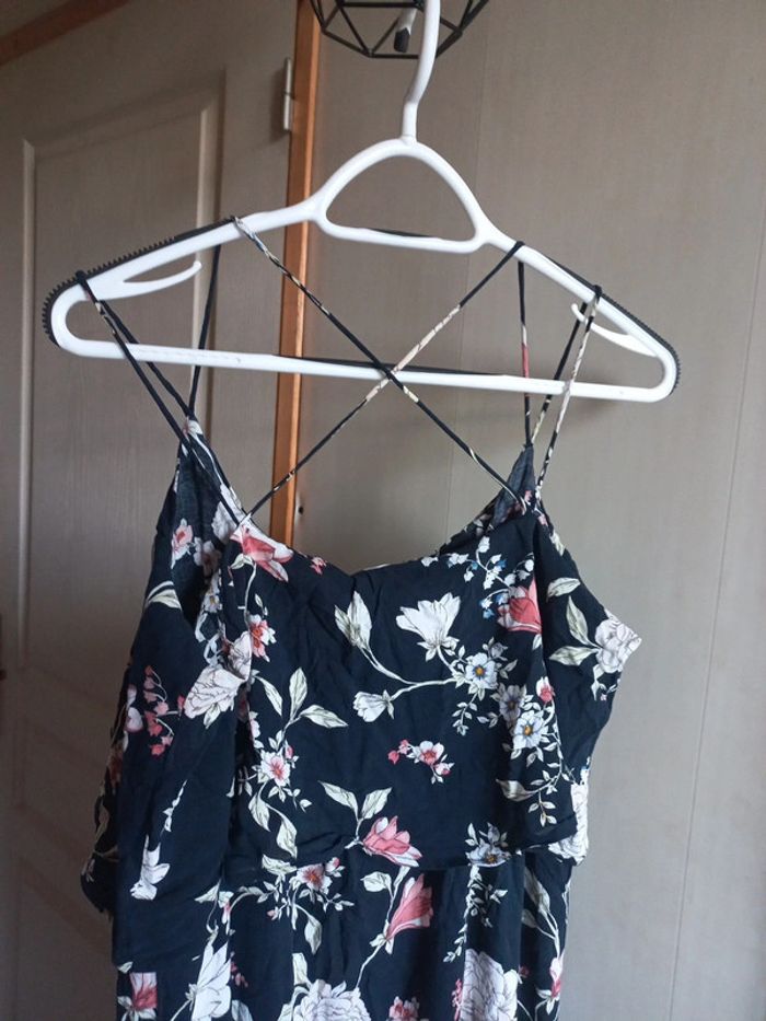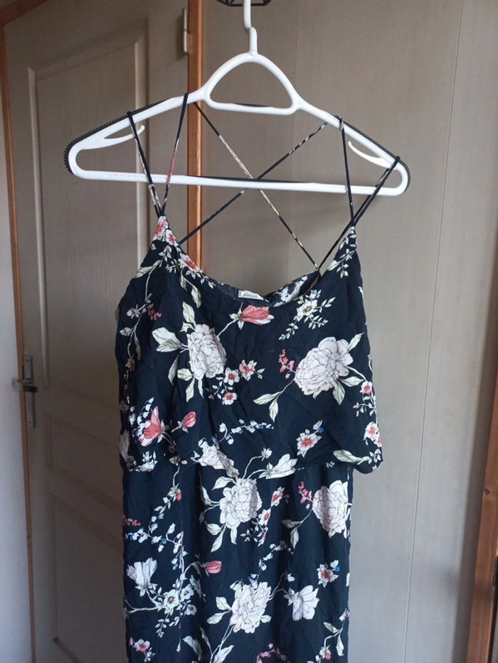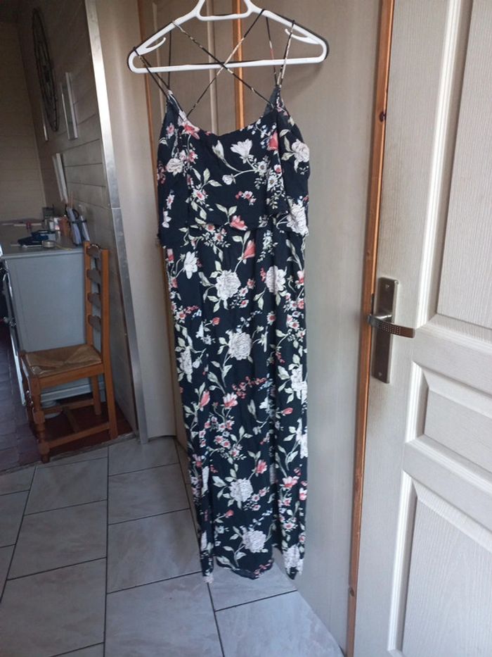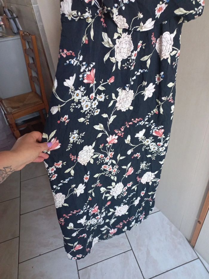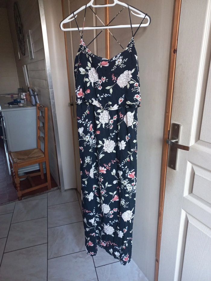 Robe longue Noire imprimée fleurs Taille 42 Bretelles croisées Pimkie