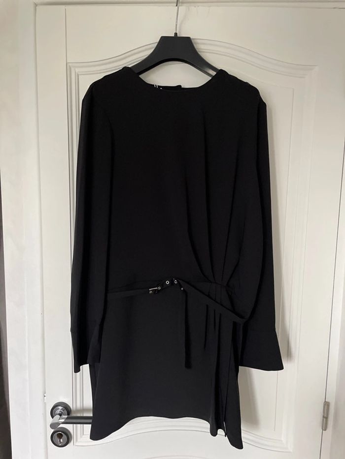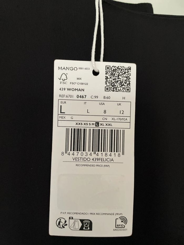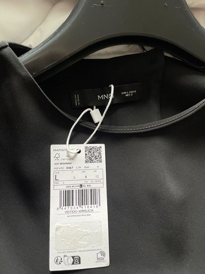 Très jolie robe noire Mango très chic au tombé impeccable. Elle se ferme par des boutons dans le dos et une fermeture éclair. Taille L Largeur épaules : 44cm Largeur sous aisselles : 54cm Largeur taille : 45 cm Longueur : 86cm Longueur bras : 65cm Neuve avec étiquette, achetée 59€