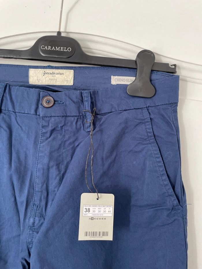 Pantalon Stradivarius coupe chino slim fit, bleu, taille 38. Neuf avec étiquette