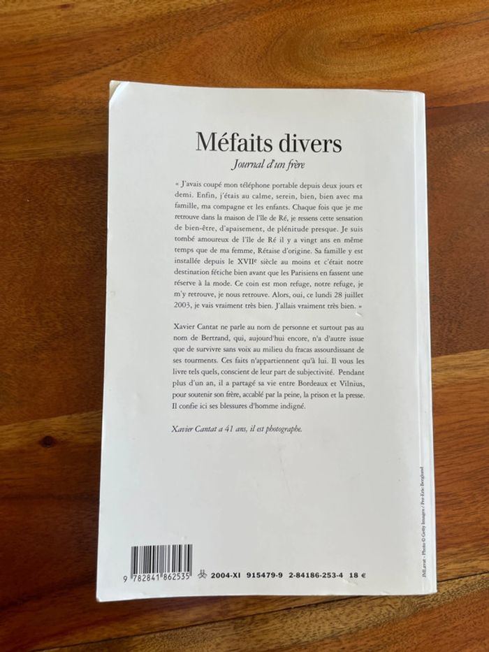 Livre : Méfaits divers, journal d’un frère de Xavier Cantat L’affaire Bertrand Cantat selon son frère Très bon état