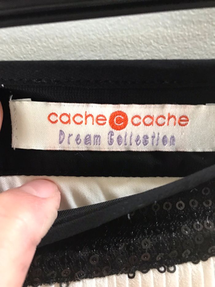 très jolie jupe plissée Cache-cache portée 1 fois, elle est blanc cassée avec la ceinture noire en sequins. taille 36 état impeccable