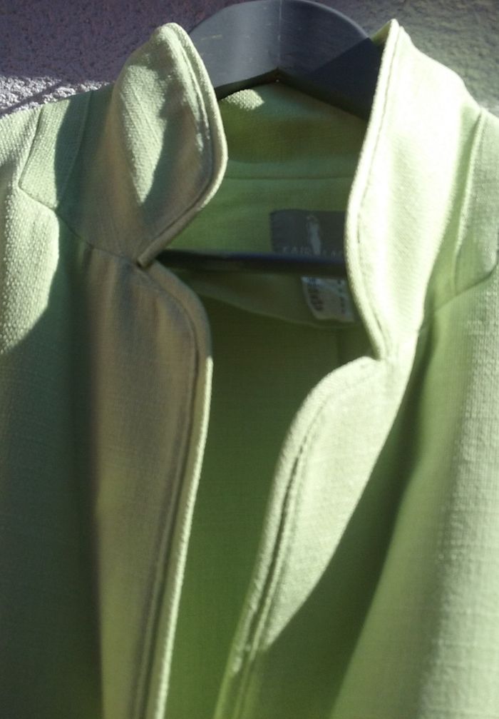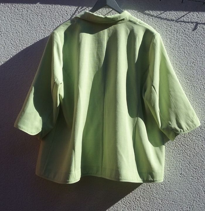 Veste vert anis, manches 3/4, petites épaulettes, T6.