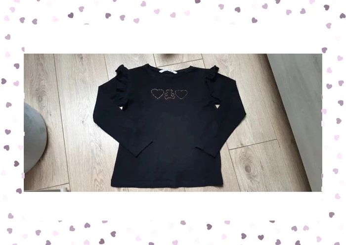 PRIX DE VENTE FERME MERCI Tee-shirt Manches longues Volants au niveau des épaules lulu castagnette Noir logo ourson et coeurs en strass 8 ans en parfait état Pour visualiser tous ce que je possède en 8 ans : #ambre626908ans