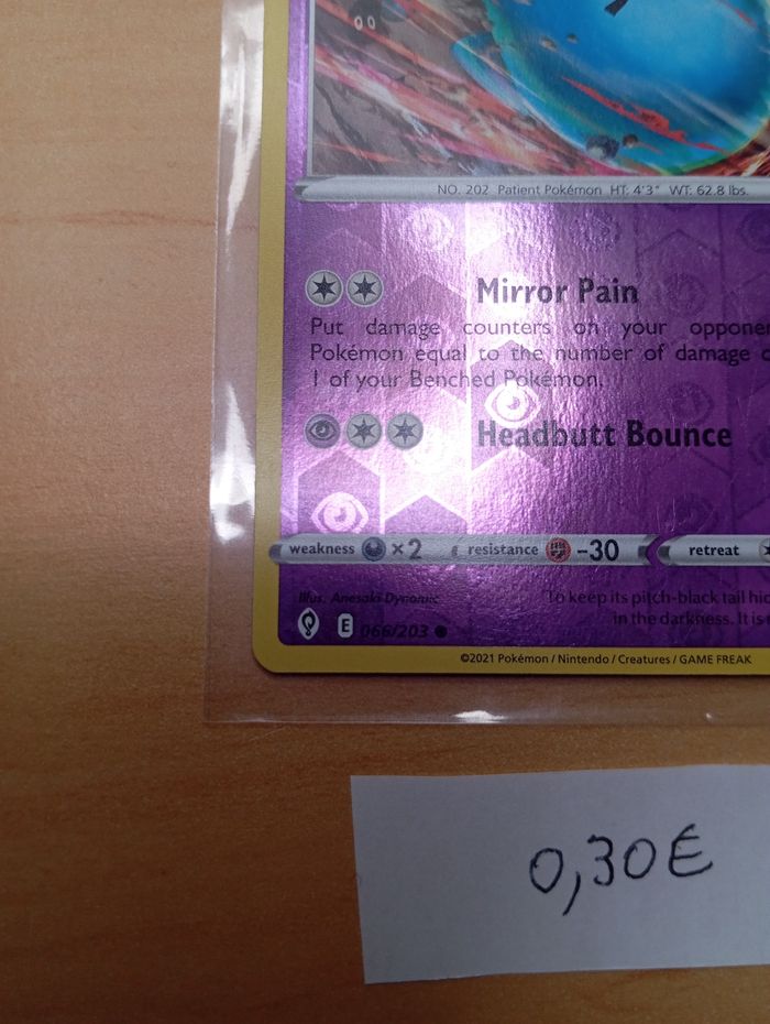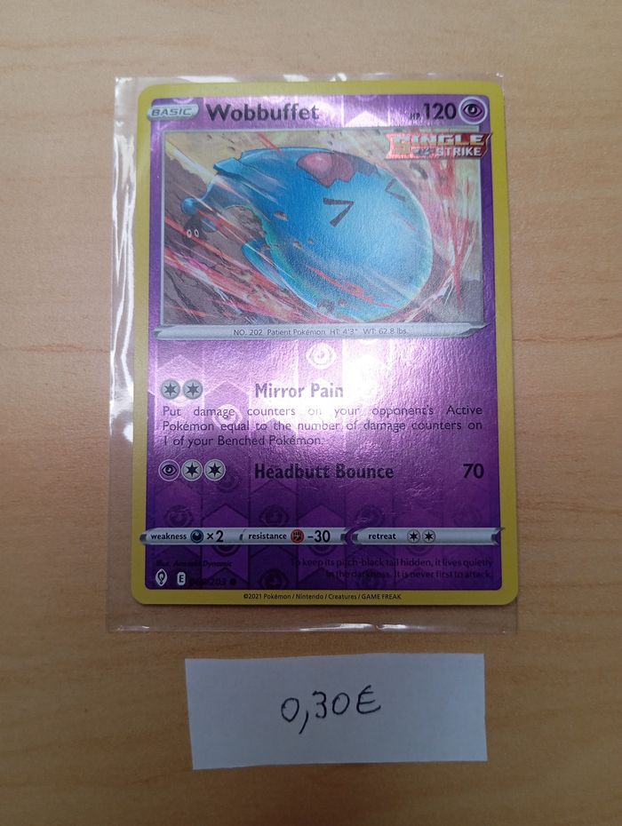 Lire la description ❗ Wobbuffet Reverse 066/203 Evolving Skies 🇬🇧 Carte Pokémon officielle et en anglais Prix : 0,30€ Etat : EX 📦 Colis protégé et soigné 🚚 Colis envoyé sous 24/48 h