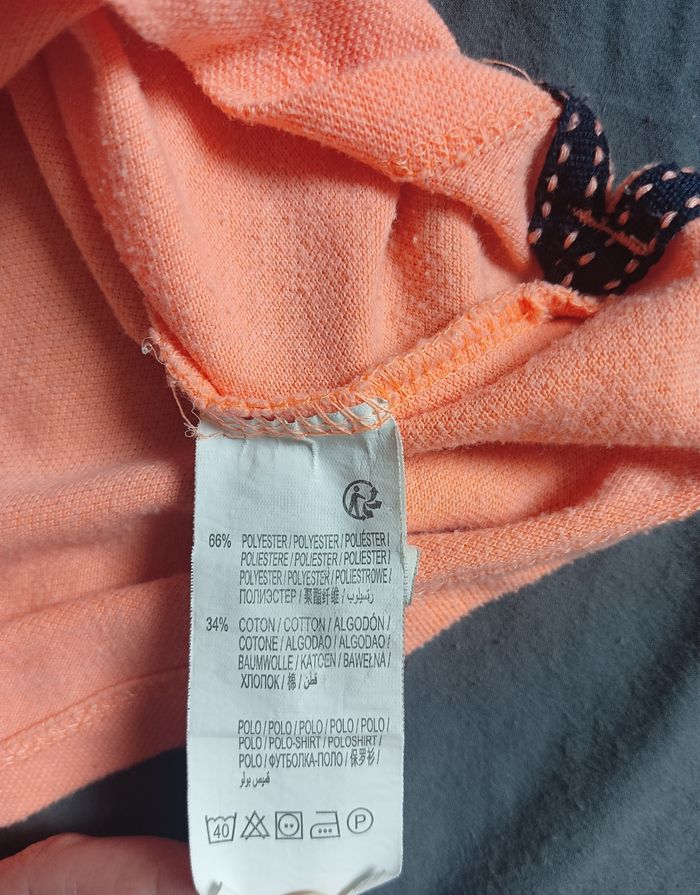 🌀 Polo garçon manches courtes 36 mois. Marque Kiabi ▪️Il a été porté mais reste en bon état. 🔸 couleur orange un peu fluo 🔸66% polyester et 34% coton