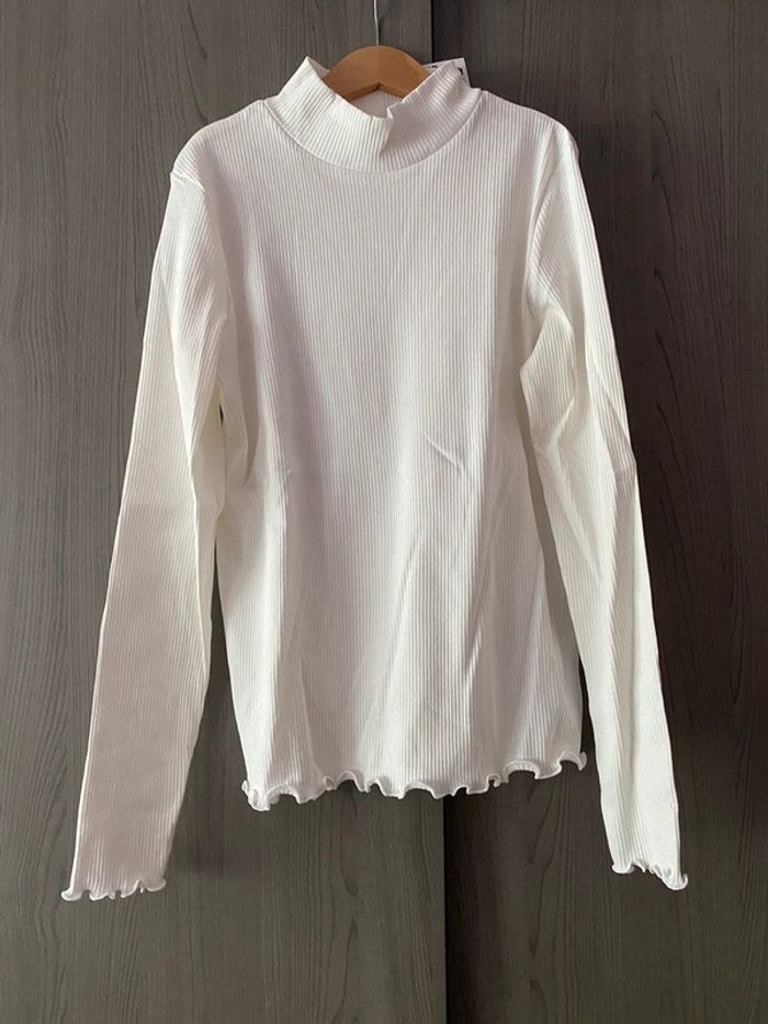 Tee-shirts avec col montant et froufrou aux manches et en bas du tee-shirts B38