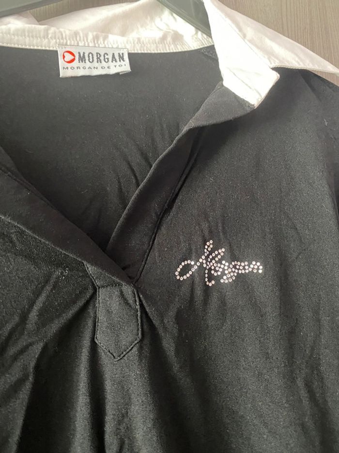 Jolie blouse manches 3/4 avec marque en strass Matière polyamide B38
