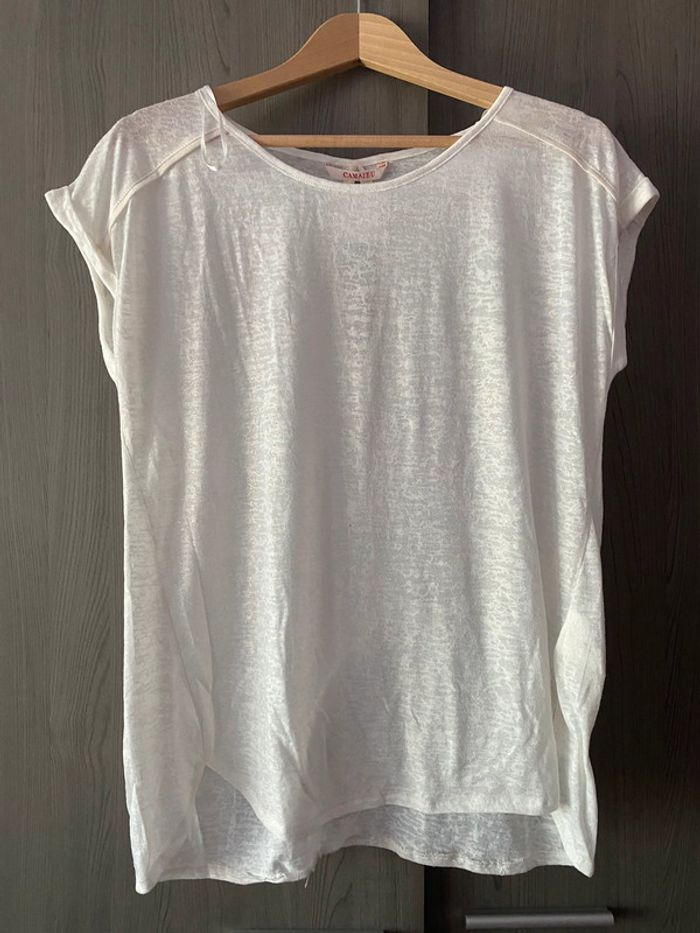 Blouse légère sans manche Blanc effet pailleté doré Taille 4 B35
