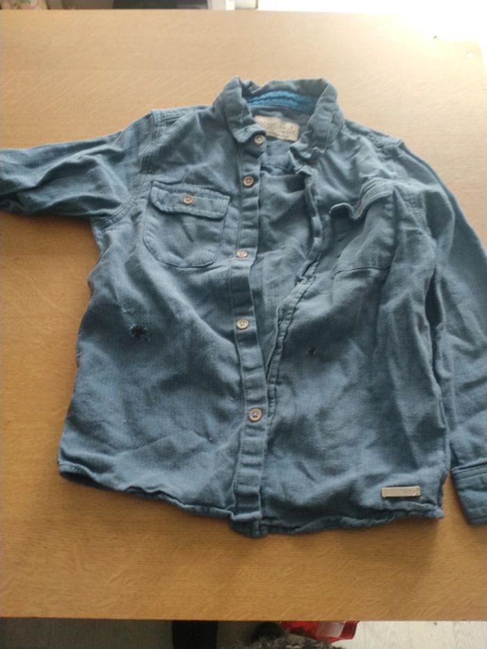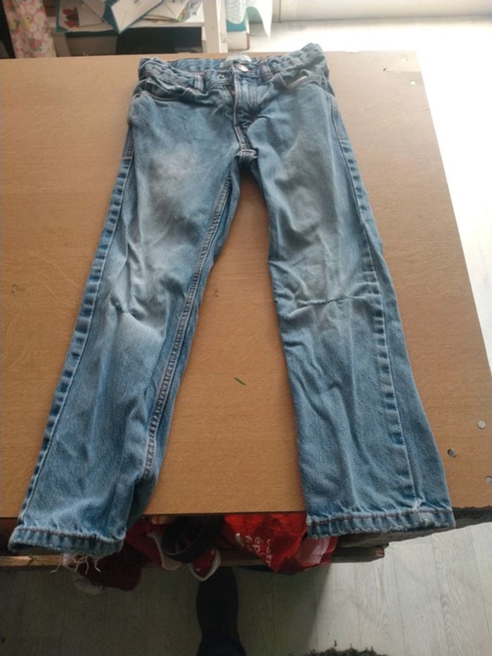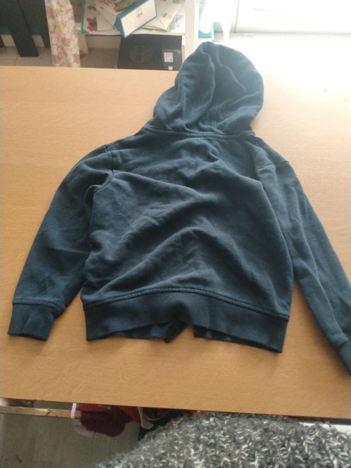 #nanane77enfant6ans #nanane77garcon6ans Lot de vêtements comprennant : - un bas de pyjama, avec un trou réparé (photo) de la marque tissaia - un jean bleu clair avec un trou à chaque genou recousus (photo) de la marque Zara - une chemise bleu et noire avec des trous visibles sur la photo (et un dans le dos) de la marque Zara - un jean gris anthracite 5/6 ans avec un trou sur le genou droit recousu et usé sur le bas, visibles sur photo, pas de marque - un jean bleu clair , un trou à chaque genou recousu, usé sur les deux bas de pantalon et au niveau des poches arrières (photos) de la marque Kiabi - un gilet zippé avec capuche, seul défaut le zip est manquant. Marque Kiabi.