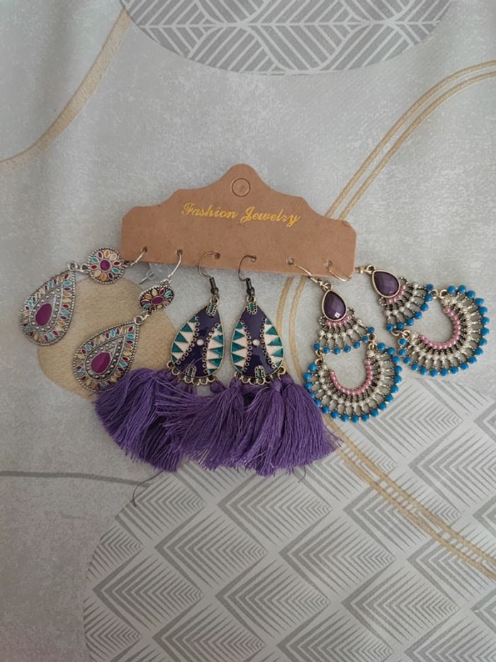 Lot de 3 paires de boucles d'oreilles fantaisie Bohemian Style - photo numéro 1