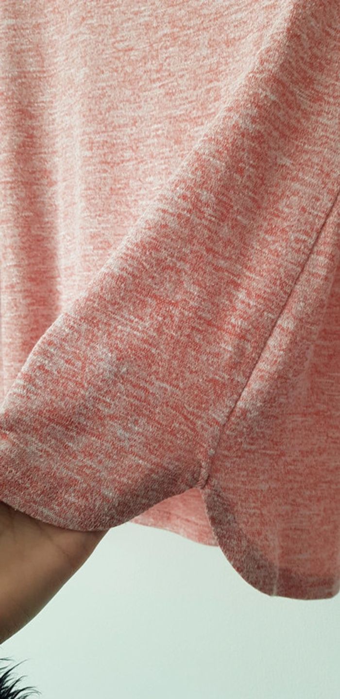 Tee-shirt manches longues rose et blanc avec un très joli arrondi en bas de tee-shirt - T. 38 peut convenir à un 40 - COMME NEUF.