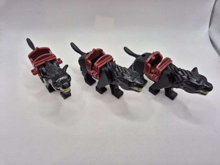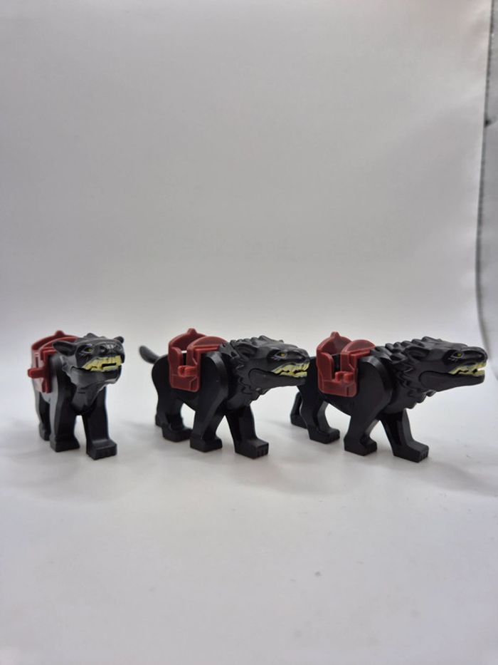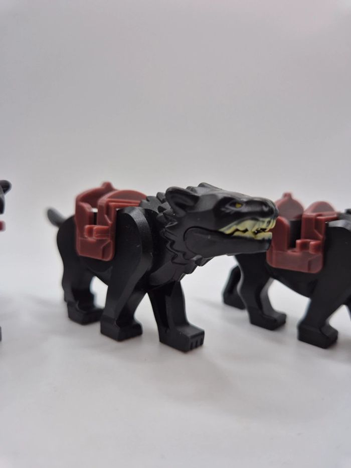 Figurines type lego 3 wargs noir pour orcs seigneur des anneaux
