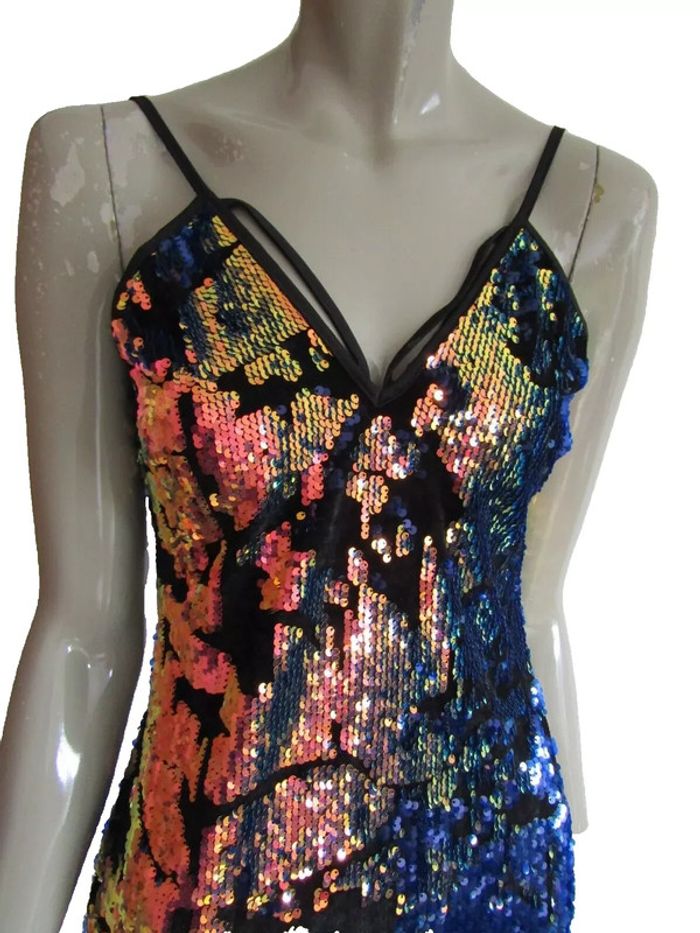 robe courte a paillettes marque bisous project pas de taille indiquée mais convient a une taille 36/38 mais bien confirmer avec les mesures prises en cms et a plat aisselles 45 longueur 87 (bretelles réglables) envoi rapide 1 jour maxi après l'achat achats groupés = frais de port réduits